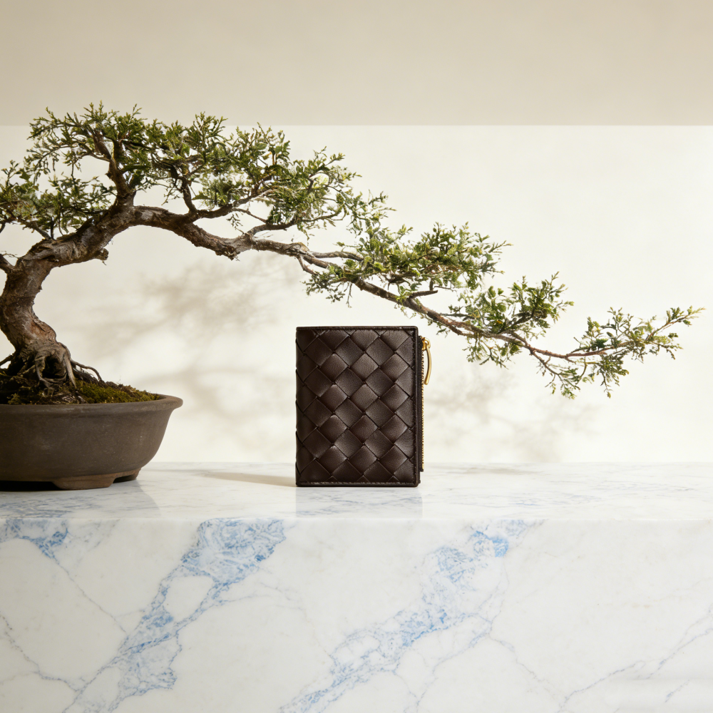 The BV Intrecciato Small Bi-Fold Wallet is an expression of refined restraint — crafted for those who understand that true luxury is felt, not announced.
