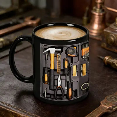 Inspired by the organized beauty of a real toolbox, this mug transforms familiar tools—hammers, pliers, and screwdrivers—into a playful, eye-catching design. Each detail is carefully sculpted to create depth and texture, turning an everyday coffee mug into a miniature workshop.
